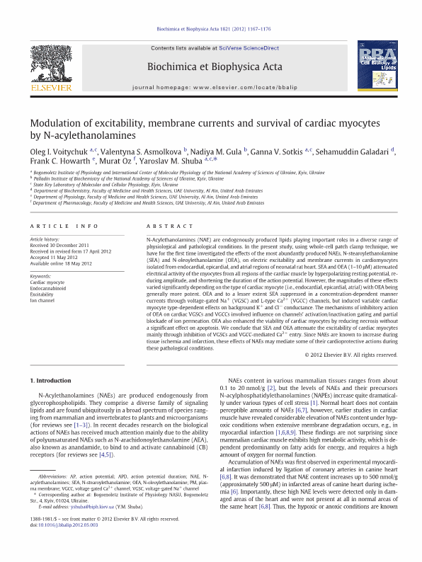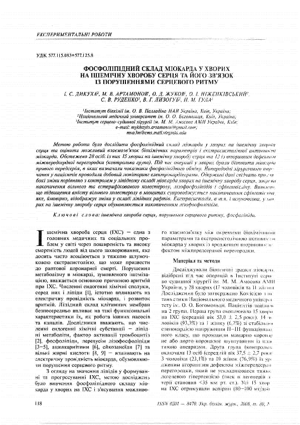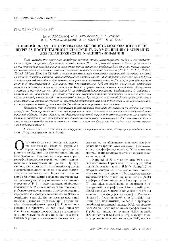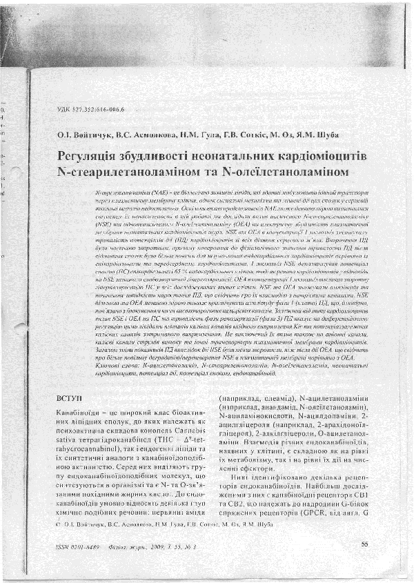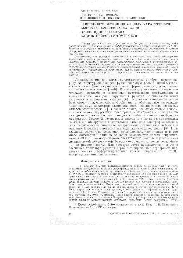 Гулая Н. М., Волков Г. Л., Лишко В. К., Говсеева Н. Н., Клименко Е. П. Зависимость функциональных характеристик быстрых натриевых кaналов от липидного состава клеток нейробластомы С1300 // Укр. біохім. журн. -1986. -58, №1. -С.44-47.