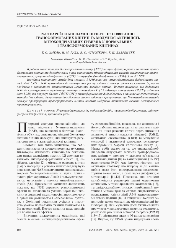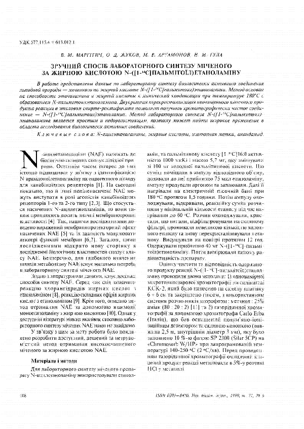 Маргітич В. М., Гула Н. М., Горпинченко І. І., Бойко М. І. Трансмембранный транспорт липидов между лецитиновыми липосомами и клетками нейробластомы С1300 N18 // Укр. біохім. журн. -1987. -59, №4. -С.64-68.