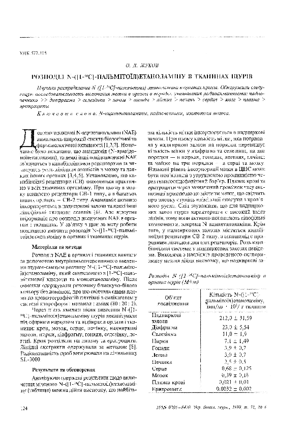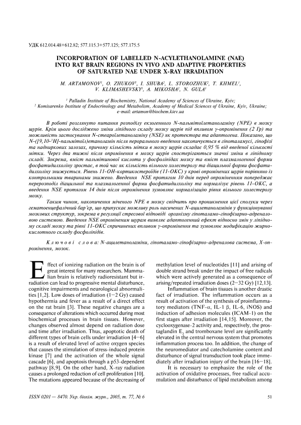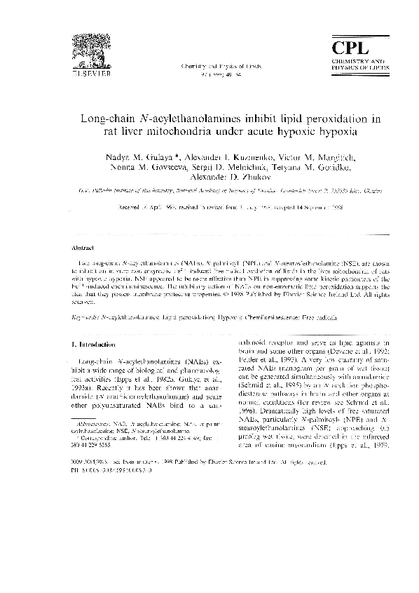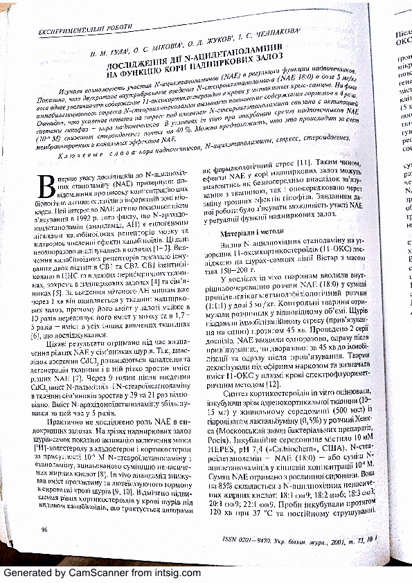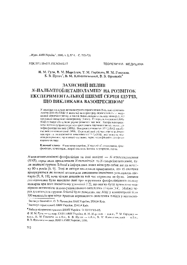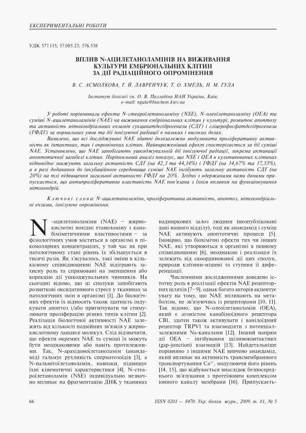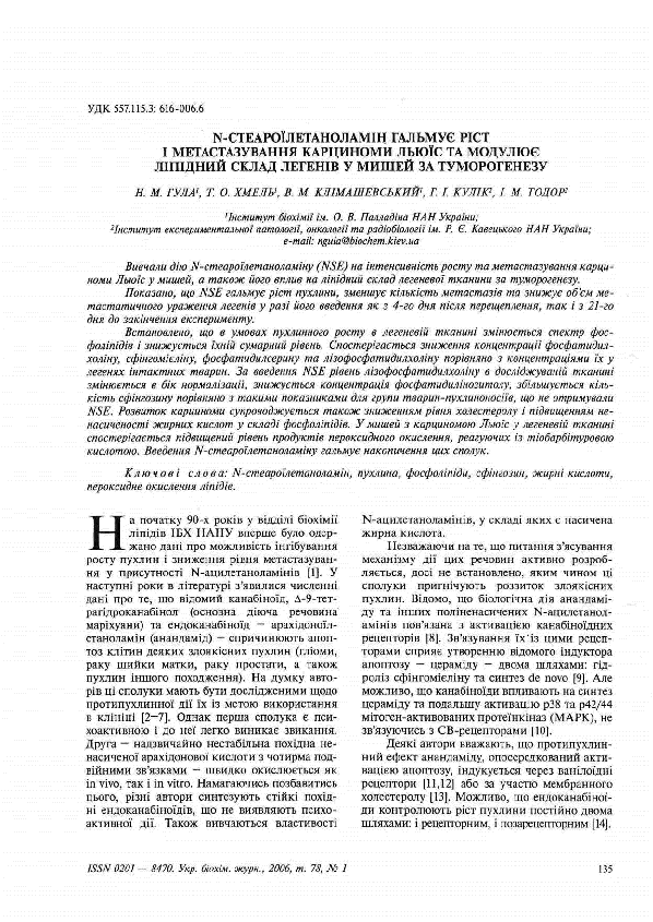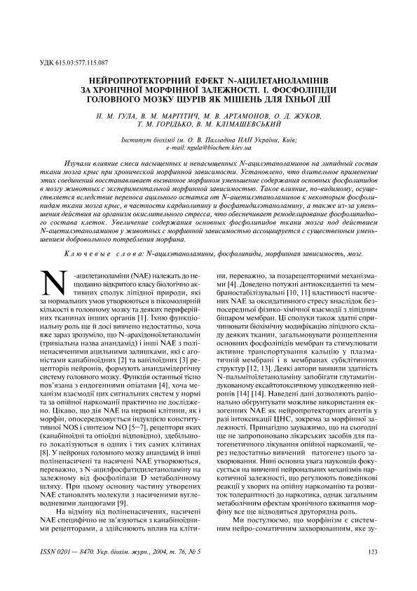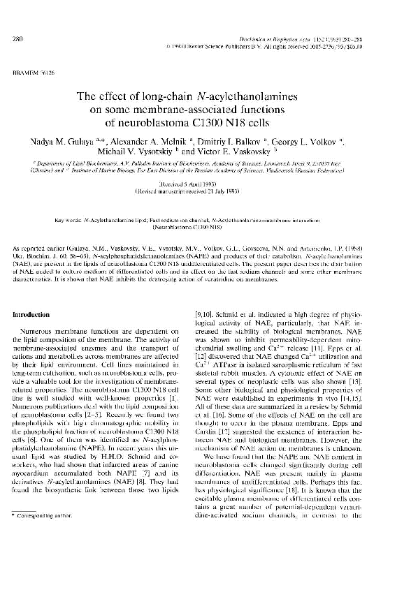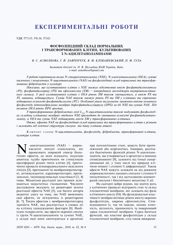 Гулая Н. М., Васьковский В. Е., Высоцкий М. В., Волков Г. Л., Говсеева Н. Н., Артёменко И. П. Обнаружение N-ацилэтаноламиновых фосфолипидов в клетках нейробластомы С1300 // Укр. біохім. журн. -1988. -60. -С.58-63.