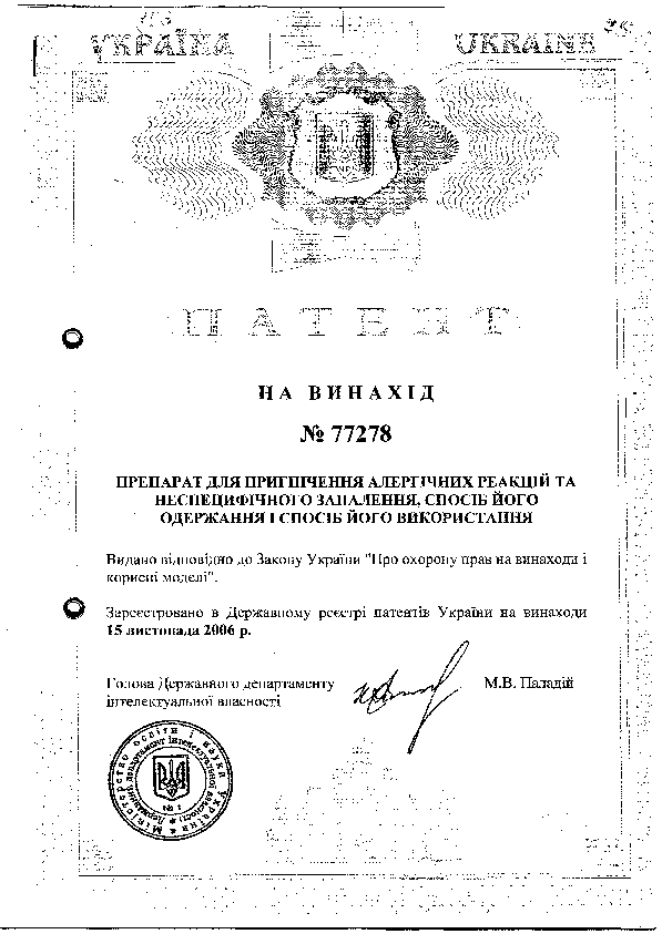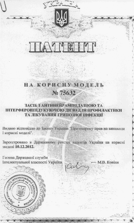Гула Н.М., Чумак А.А., Горідько Т.М., Косякова Г.В., Бердишев А.Г., Мегедь О.Ф., Асмолкова В.С., Чернишенко В.О., Рибалко С.Л., Старосила Д.Б., Дерябін О.М., Архипова М.А. Засіб з комплексною дією для лікування коронавірусної хвороби. Патент України 129241. 19.02.2025.