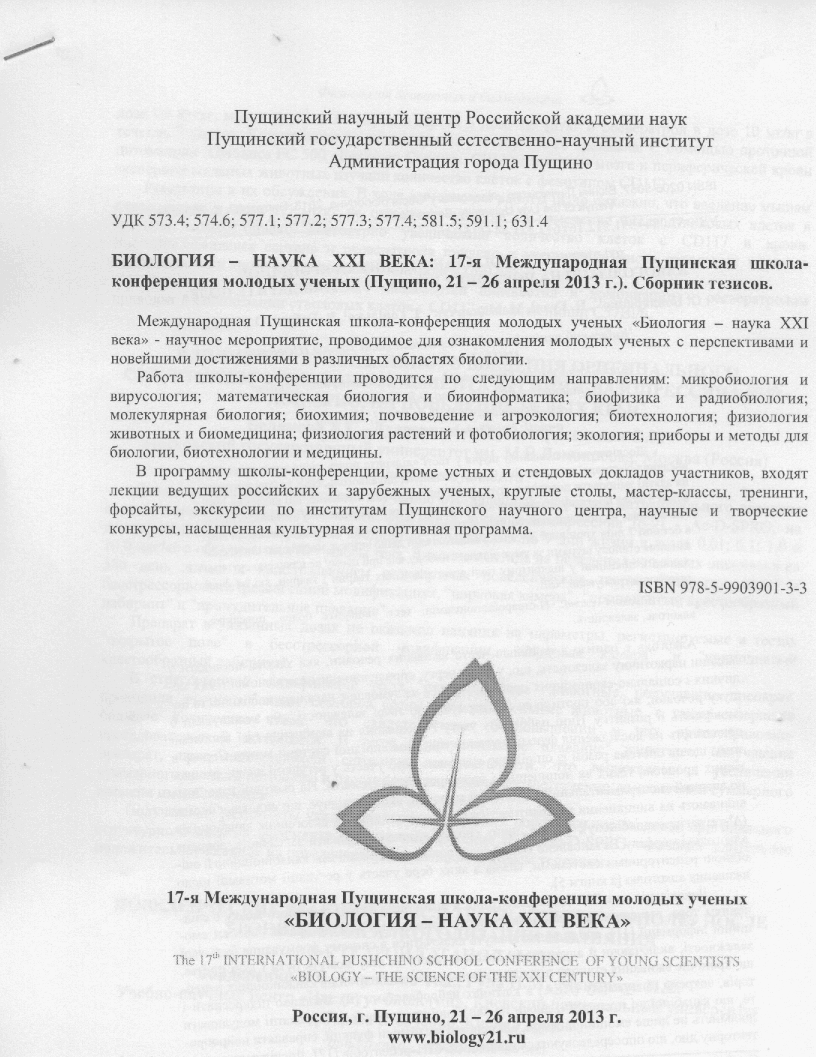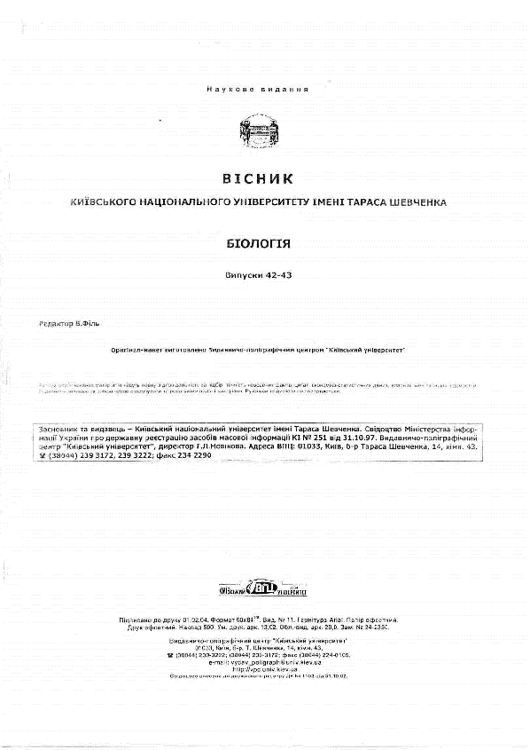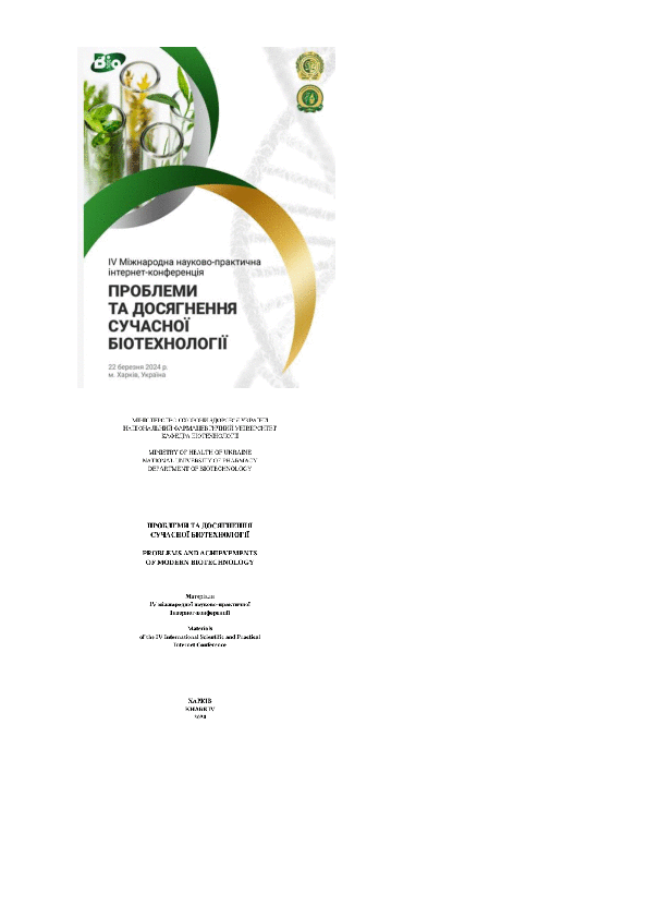 //XXI INTERNETIONAL CONFERENCE OF STUDENTS AND YOUNG SCIENTISTS “SHEVCHENKIVSKA VESNA: ADVANCEMENTS IN LIFE SCIENCES”, BOOK OF ABSTRACTS (Kyiv, 24-26 April, 2024).- 2024. - P.207 - 210.