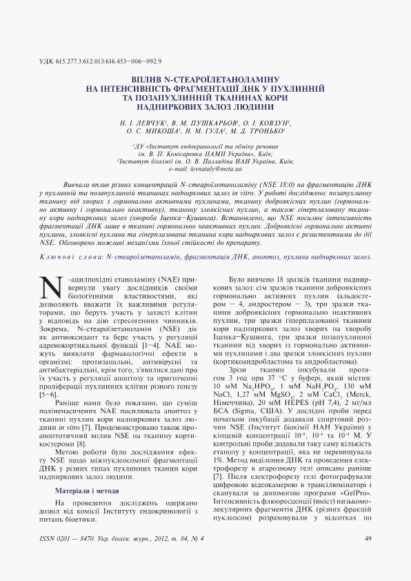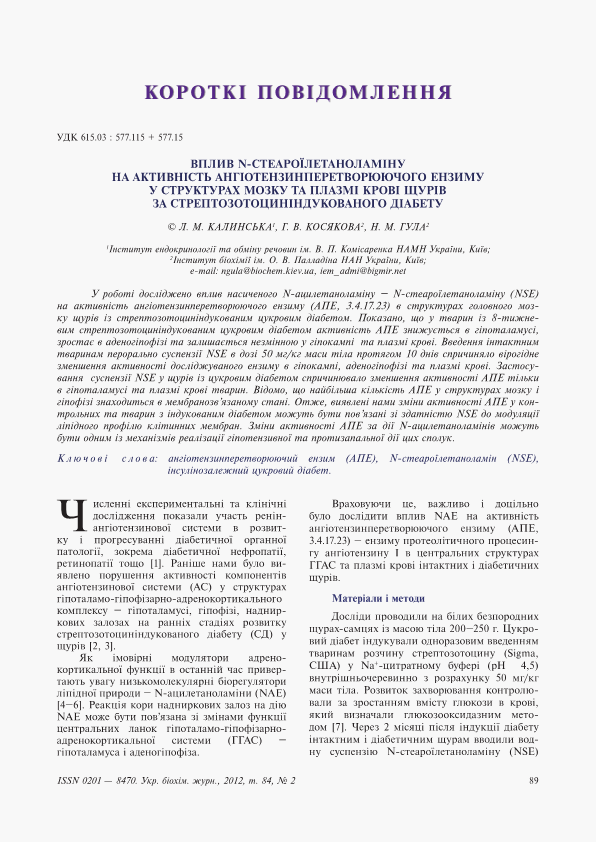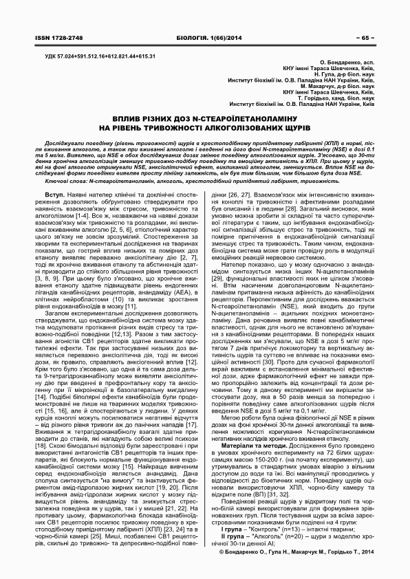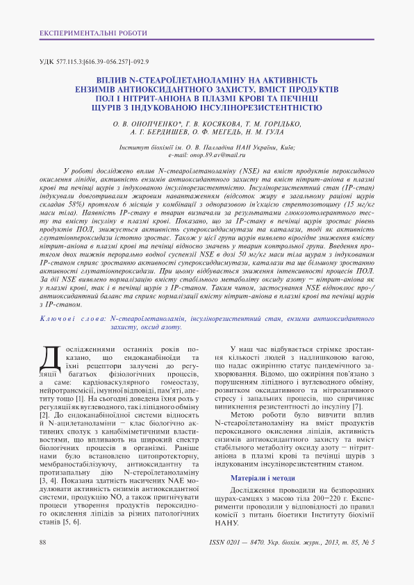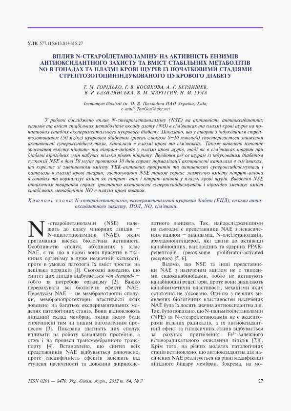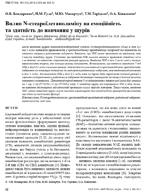 Ібрагімов К., Косякова Г., Горідько Т. ВПЛИВ N-СТЕАРОЇЛЕТАНОЛАМІНУ НА РІВНІ