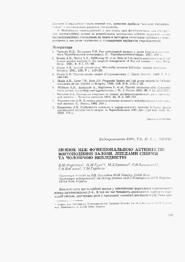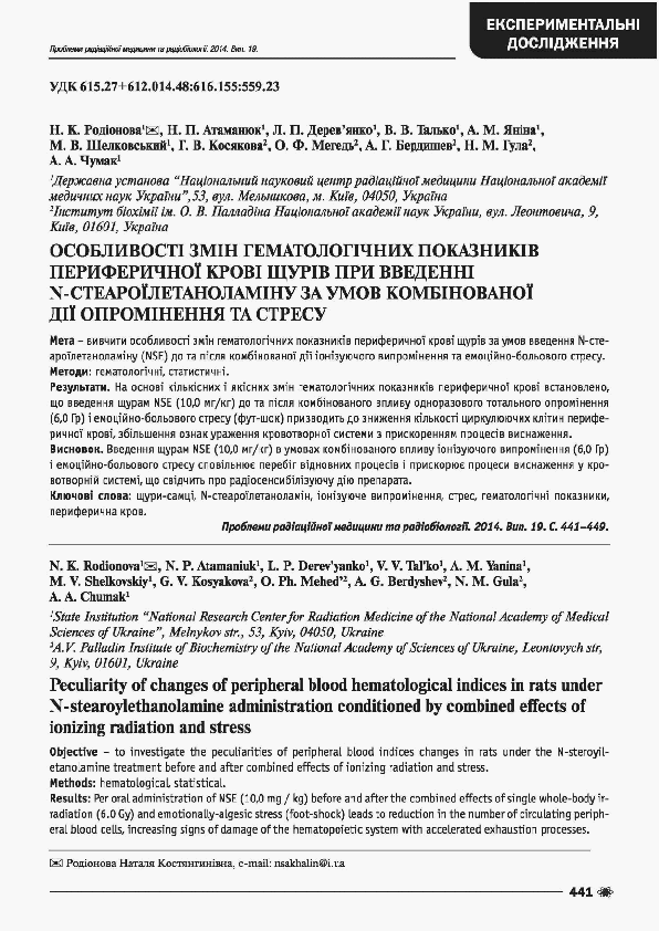 Pidlisetsky A.T., Kosiakova G.V., Goridko T. M., Berdyschev A.G., Meged O.F., Savosko S., Dolgopolov O. V.