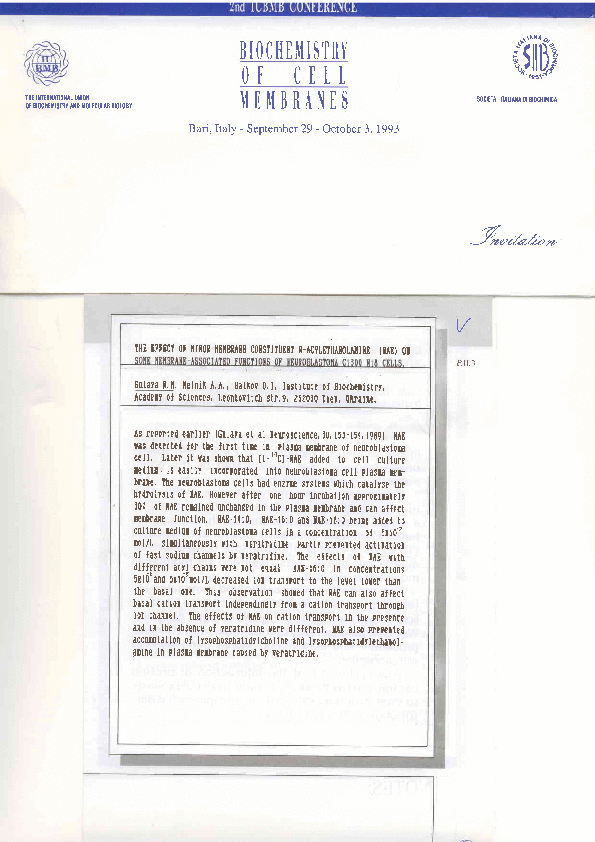 Гулая Н. М., Артеменко И.П., Климашевский В. М. Изменение функции мембранных белков в дифференцированных клетках мышиной нейробластомы С1300 с модифицированным липидным составом // Тезисы 14 междунар. биохим. конгресса, Прага, 1989