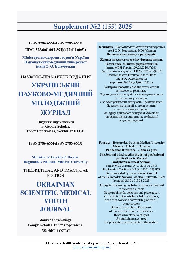 Luhovskyi S.P., Kvitnitskaya-Ryzhova T.Y., Mykhalskiy S.A., Klymenko P.P., Malysheva S.P., Kosiakova G.V. Morphological characteristics and assessment of histological changes in the rats' liver under modeling type 2 diabetes and its correction by N-stearoylethanolamine//Morphologia.- 2025. -V.19, N4. - P.55 - 63. DOI: https://doi.org/10.26641/1997-9665.2025.4.55-63.