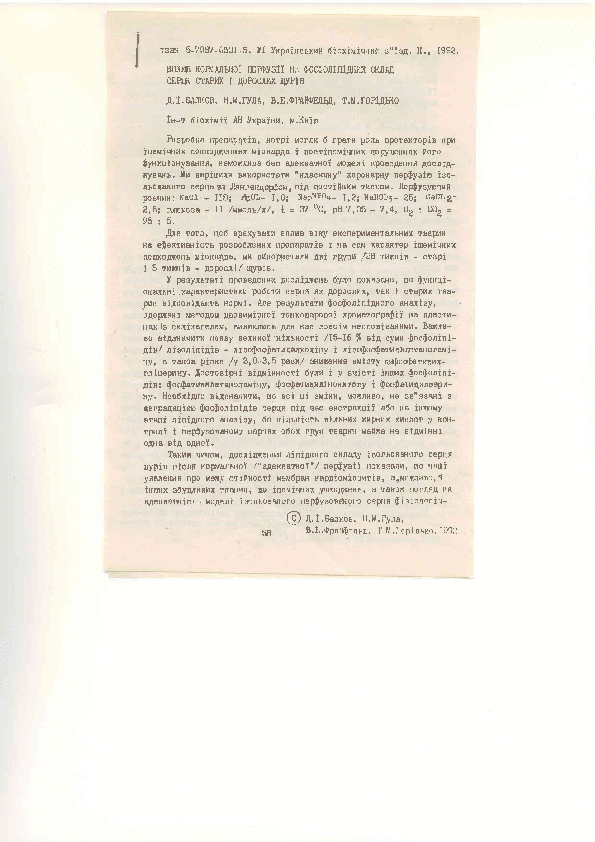 Хомутовский О.А., Передерей О.Ф., Говсеева Н.Н., Луцик М.Д., Худякова Н.А. Изучение легко и прочносвязанныхс белками липидов клеток нейробластомы мыши С1300 в процессе дифференцировки // Тезисы докл V Укр. биохим. съезда, 1987. -С.344.